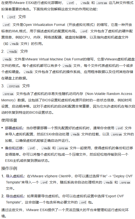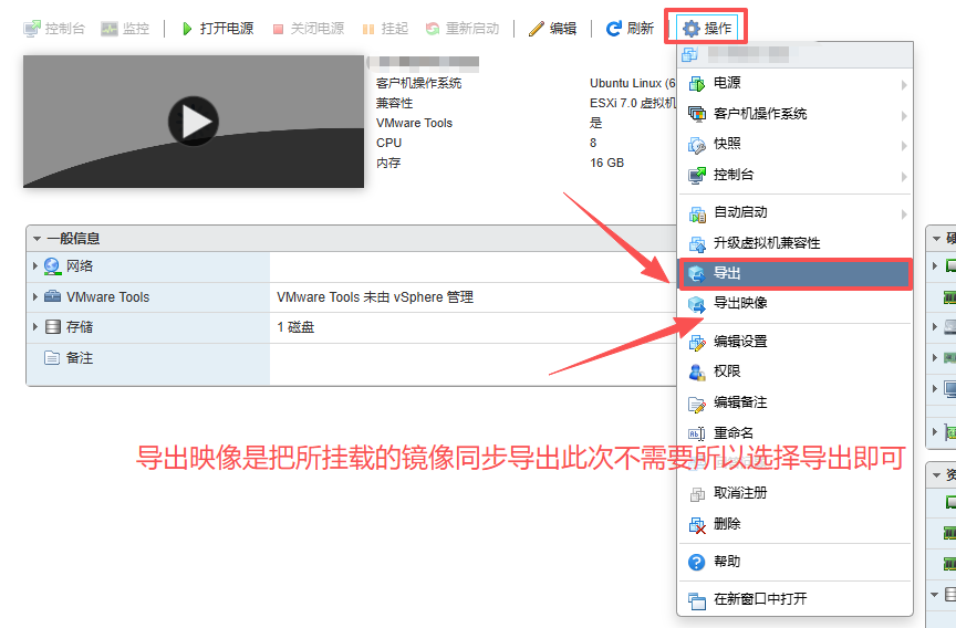 ESXI导出OVF模板 vsphere导入OVF模板 Table of Contents Toggle 导出导入 导出 注意点!!! 1、不要出现任何中文名称 如果有中文.ovf文件里对应的中文名称可能是乱码。如果是乱码,直接修改成英文名即可,同步修改.vmdk的文件名后导入2、编辑设置删除CD/DVD驱动器 不然会找不到这个磁盘映像也可以编辑.ovf文件,找到ovf:href="***.nvram",把这一行注释掉导入 之后再次重新导出 因为本次导出前是拦截的 少个nvram文件 导入 根据自己需求选择文件夹以及存储 2025年12月2日 by wangjiale 未分类 0